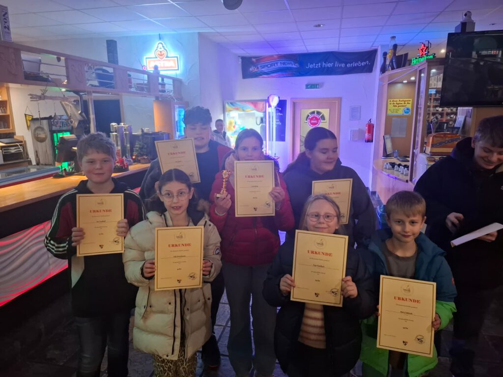 Jahr 2025 Bowling Abschlusfeier Bademeister Titel Entenrennen in Werne Karnevalsfeier Lippetour mit Übernachtung Spiel und Spaß Widwassertour Siegerehrung gefahrene KM